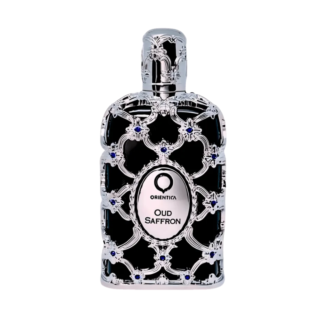 O Oud Saffron da Orientica é um Eau de Parfum que personifica a realeza da perfumaria árabe. O seu frasco é uma verdadeira joia, com um design em arabesco prateado sobre fundo preto e pedras azuis que remetem ao Oriente. Sua essência poderosa combina o Oud mais puro e a especiaria Açafrão em uma fusão quente e opulenta. É uma fragrância noturna e inesquecível, com projeção extrema e uma fixação notável na pele.